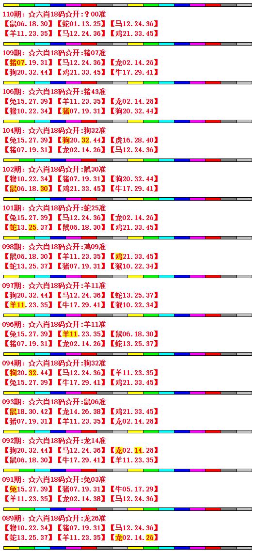 093期:[狗20.牛05.虎16.猴10.鼠18.蛇13]开(鼠06) | |